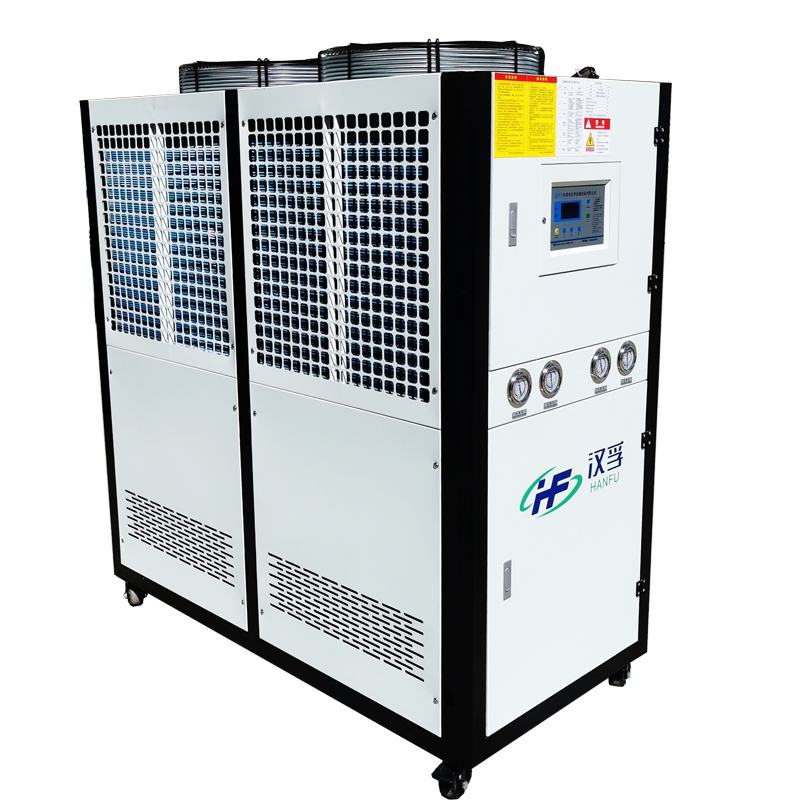 風(fēng)冷式冷水機組 漢孚LF系列風(fēng)冷式冷水機可以提供3至40℃的低溫冷凍水,特殊機型可提供低溫零下-30℃的冰水,風(fēng)冷式冷水機具有外觀精巧,運行穩(wěn)定,價格實惠,移動方便等優(yōu)點。 漢孚LF系列冷水機組制冷量從7482Kcal/h至144996Kcal/h(壓縮機功率1HP至60HP),可廣泛應(yīng)用于注塑、吸塑、擠出等行業(yè),冷水機可以精確控制塑膠成型模具溫度以縮短成型周期,加速產(chǎn)品定型,使產(chǎn)品不變形不縮水,還可以提高產(chǎn)品表面的光潔度,增強透視率。也適用于化工、電鍍、電泳、塑料包裝、橡膠機械、橡塑機械、機床加工、食品加工、真空鍍膜、液壓站冷卻等各行各業(yè)的溫度控制。